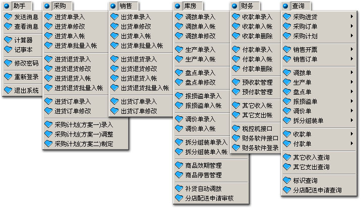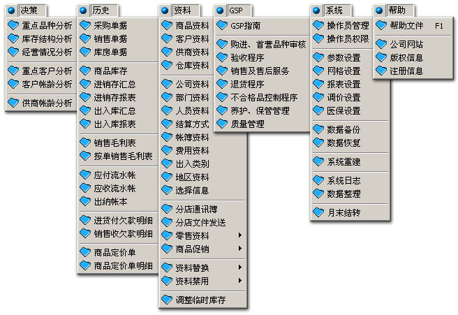 ● 中國(guó)軟件注冊(cè)產(chǎn)品 專(zhuān)業(yè)品質(zhì)優(yōu)秀軟件 ● 藥品生產(chǎn)批發(fā)零售 各類(lèi)企業(yè)都能適合 ● 配合GSP&GMP認(rèn)證 全面管理進(jìn)銷(xiāo)存財(cái) ● 五筆拼音條碼助記 多種輸入任意選擇 ● 對(duì)方代碼一樣可用 分類(lèi)分級(jí)個(gè)別定價(jià) ● 徹底解決批次效期 先進(jìn)先出方便直觀(guān) ● 生產(chǎn)日期滅菌批號(hào) 貨位貨架井井有條 ● 表體設(shè)置自由搭配 貨位效期輕松調(diào)整 ● 有效失效智能提示 積壓短缺即時(shí)可得 ● 手動(dòng)自動(dòng)采購(gòu)訂單 最低最后進(jìn)價(jià)取舍 ● 先進(jìn)后出得心應(yīng)手 折扣計(jì)價(jià)方式靈活 ● 商品調(diào)價(jià)多樣選擇 整數(shù)零數(shù)自由組合 ● 統(tǒng)計(jì)查詢(xún)方便快捷 打印格式隨心所欲 ● 套打清單準(zhǔn)確無(wú)誤 資信額度隨時(shí)可調(diào) ● 賬齡分析一目了然 現(xiàn)金銀行筆筆清楚 ● 小數(shù)位數(shù)任意調(diào)整 庫(kù)存盤(pán)點(diǎn)輕松自在 ● 權(quán)限設(shè)置環(huán)環(huán)相扣 特殊賬套多樣設(shè)置 ● 開(kāi)票回款業(yè)務(wù)提成 稅局稅控?zé)o縫連接 |