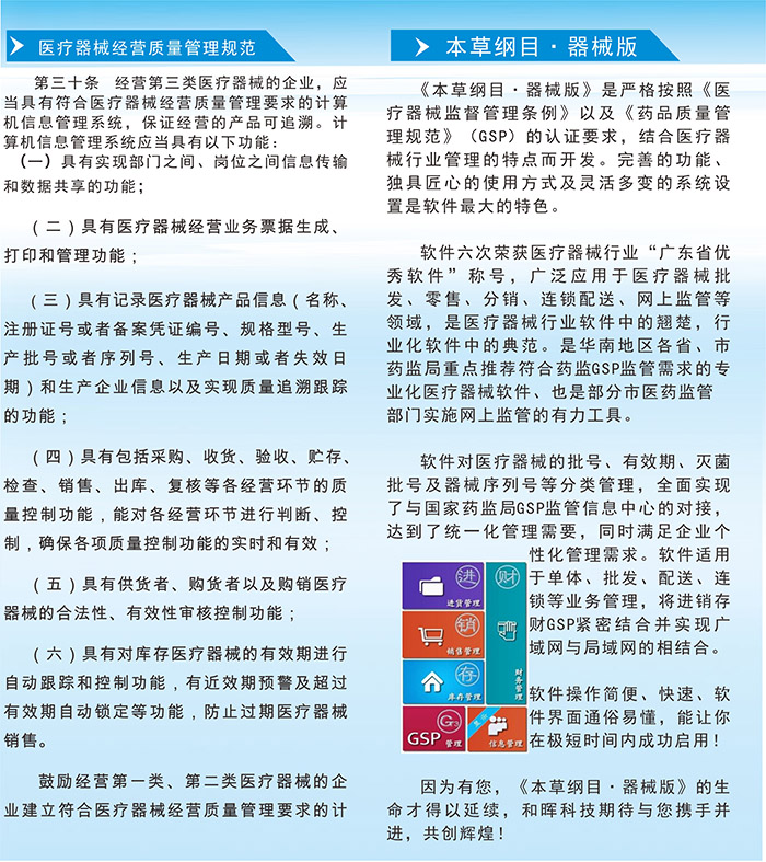 ●專(zhuān)給醫(yī)療器械經(jīng)營(yíng)者用的軟件《本草綱目》 | |