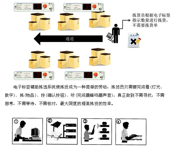 1.利用電子標(biāo)簽揀貨,可大大加快揀貨速度,提高揀貨的準(zhǔn)確率,提高揀貨效率,降低揀貨成本。